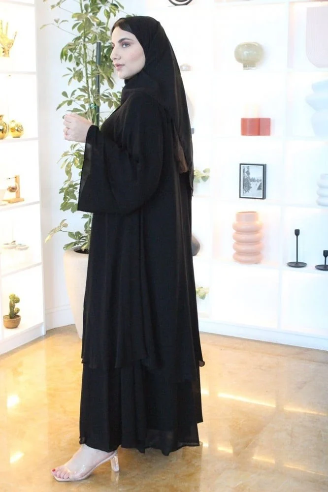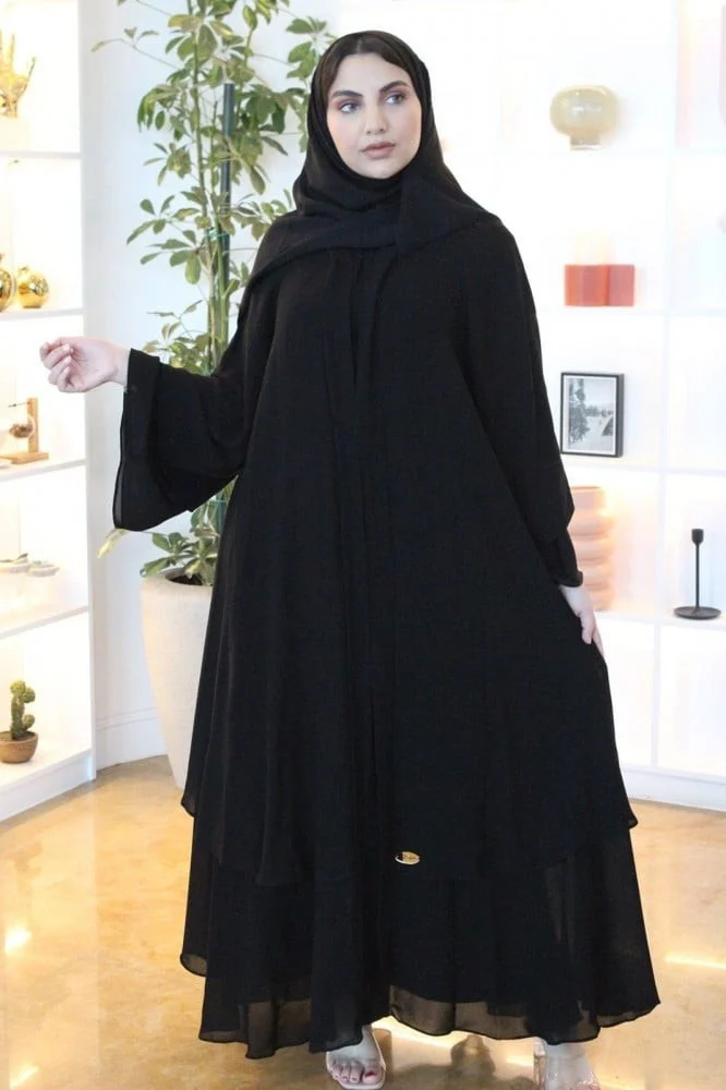 - اللون الأسود يجعل من السهل تنسيق العباية مع مختلف الإكسسوارات والأحذية.