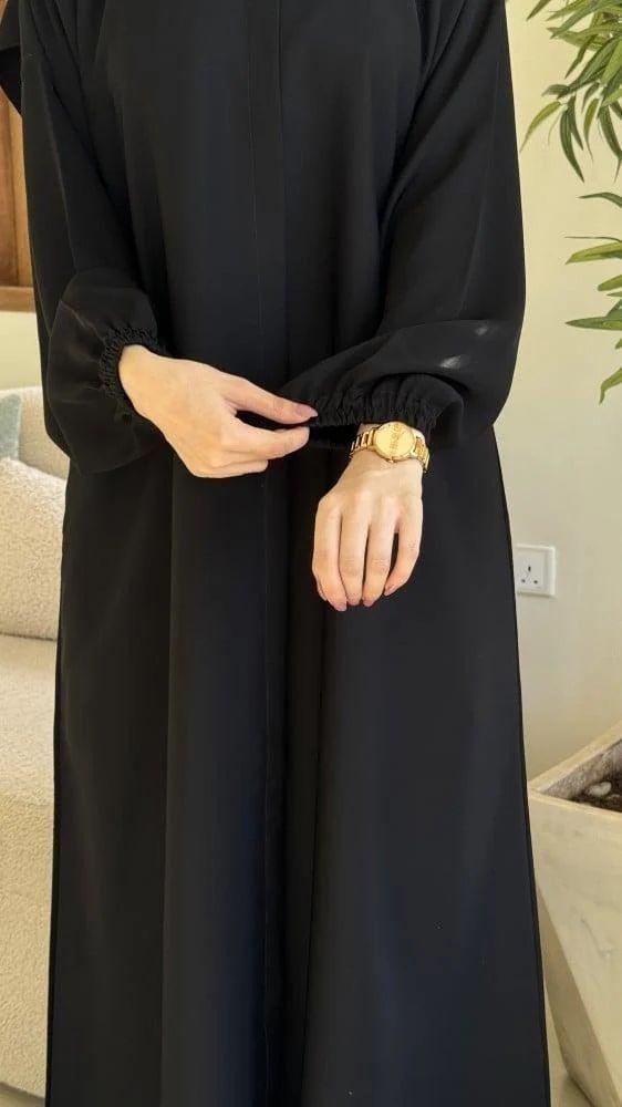 لون أسود كلاسيكي يضيف لمسة من الفخامة ويجعل العباية مناسبة لكل المناسبات.