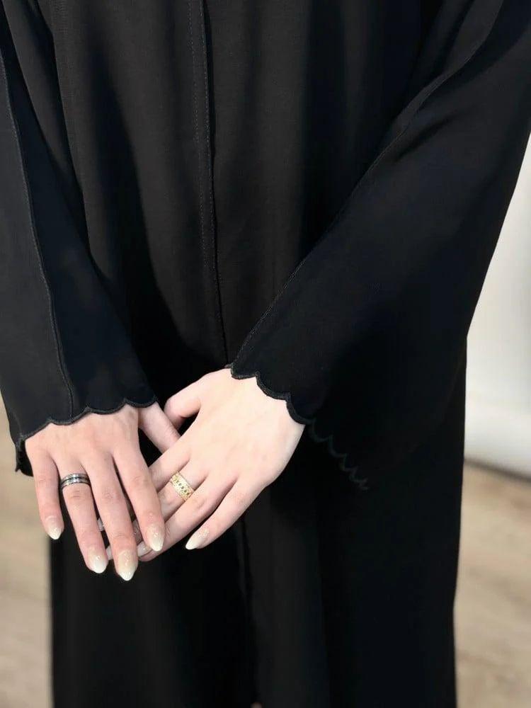 عبايه سوداء أنيقة مصممة بخياطة فاخرة على طرف الأكمام، حيث يضيف التطريز الدقيق لمسة من الفخامة والتميز، بتصميمها العصري الذي يناسب جميع المناسبات الرسمية وغير الرسمية، مما يمنحك إطلالة راقية ومحتشمة في آنٍ واحد. الخياطة على طرف الكم تضيف لمسة من الرقي والتفاصيل الدقيقة التي تجعل هذه العباية فريدة من نوعها، متوفرة الآن في عبايات رافال بسعر خيالي.